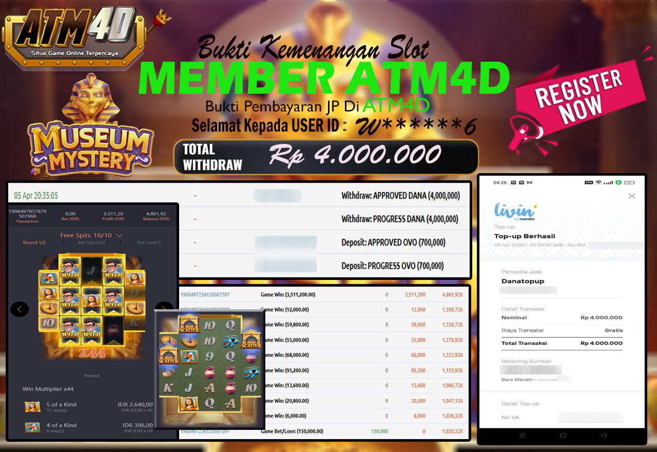 ATM4D – JACKPOT MUSEUM MYSTERY 06 APRIL 2025 Bukti Kemenangan , Kemenangan Pg Soft, Menang Platform online, Situs Aman Tergacor dan Aman, Withdraw Berapapun Pasti Di Bayar Langsung, Maxwin Slot Online.