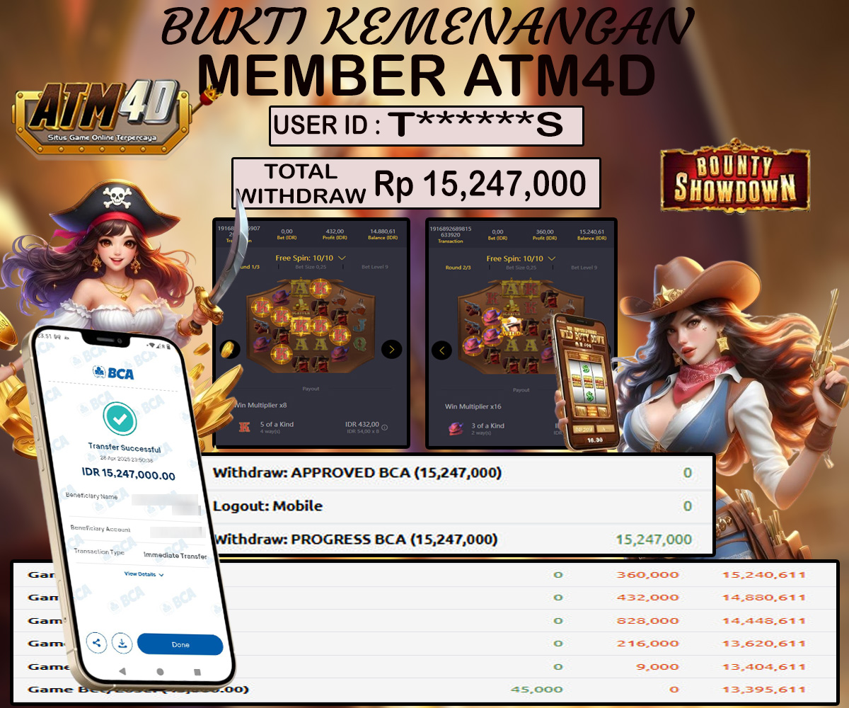 Selamat Kepada Member Yang Berhasil Mendapatkan Jackpot Dipermainan PG SOFT, Berikut Bukti Jackpot Member Di Situs ATM4D