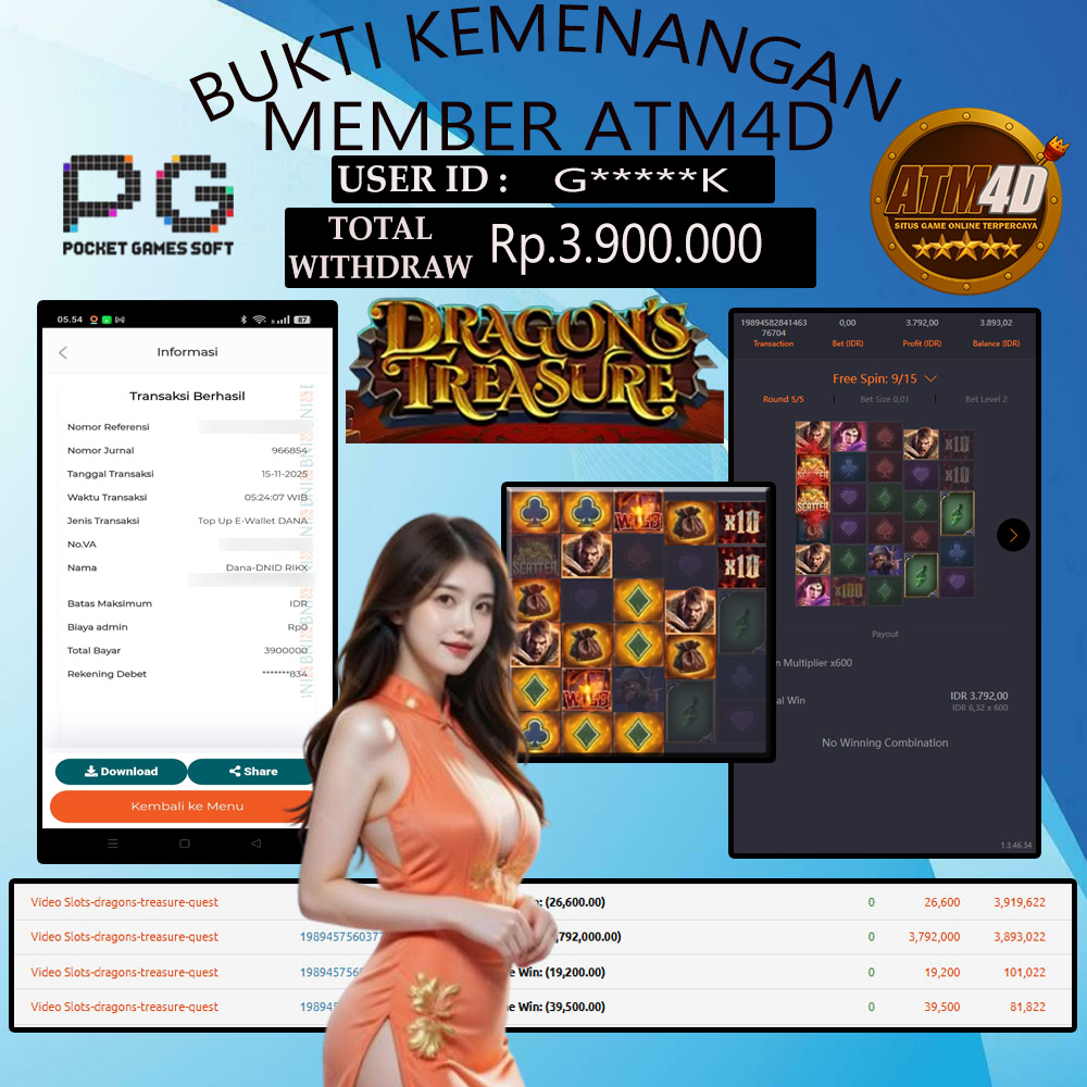 Selamat Kepada Member Yang Berhasil Mendapatkan Jackpot Dipermainan PG SOFT, Berikut Bukti Jackpot Member Di Situs ATM4D