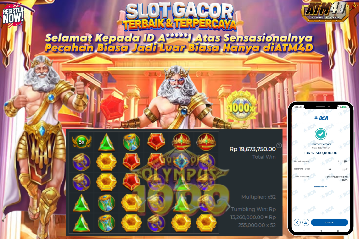 Jangan lewatkan kesempatan untuk meraih kemenangan besar. Daftar sekarang di ATM4D dan rasakan pengalaman bermain slot terbaik yang pernah ada! Putar gulungan, menangkan jackpot, dan jadilah bagian dari komunitas pemain sukses kami!