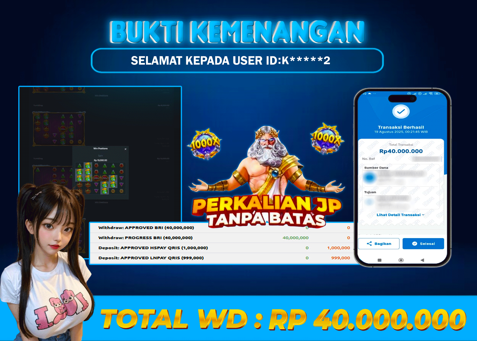 JACKPOT SLOT GATES OF OLYMPUS 19 AGUSTUS 2025
