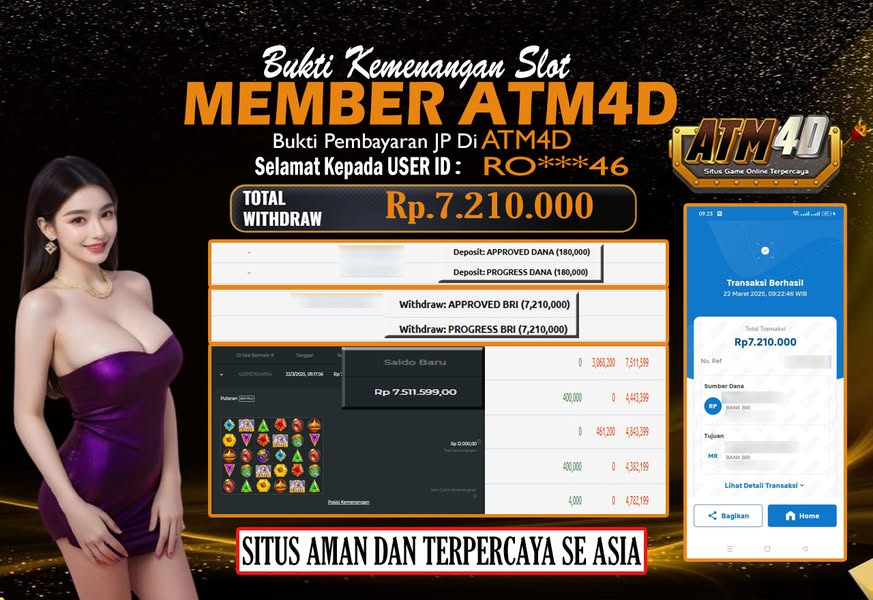 Jangan lewatkan kesempatan untuk meraih kemenangan besar. Daftar sekarang di ATM4D dan rasakan pengalaman bermain slot terbaik yang pernah ada! Putar gulungan, menangkan jackpot, dan jadilah bagian dari komunitas pemain sukses kami!