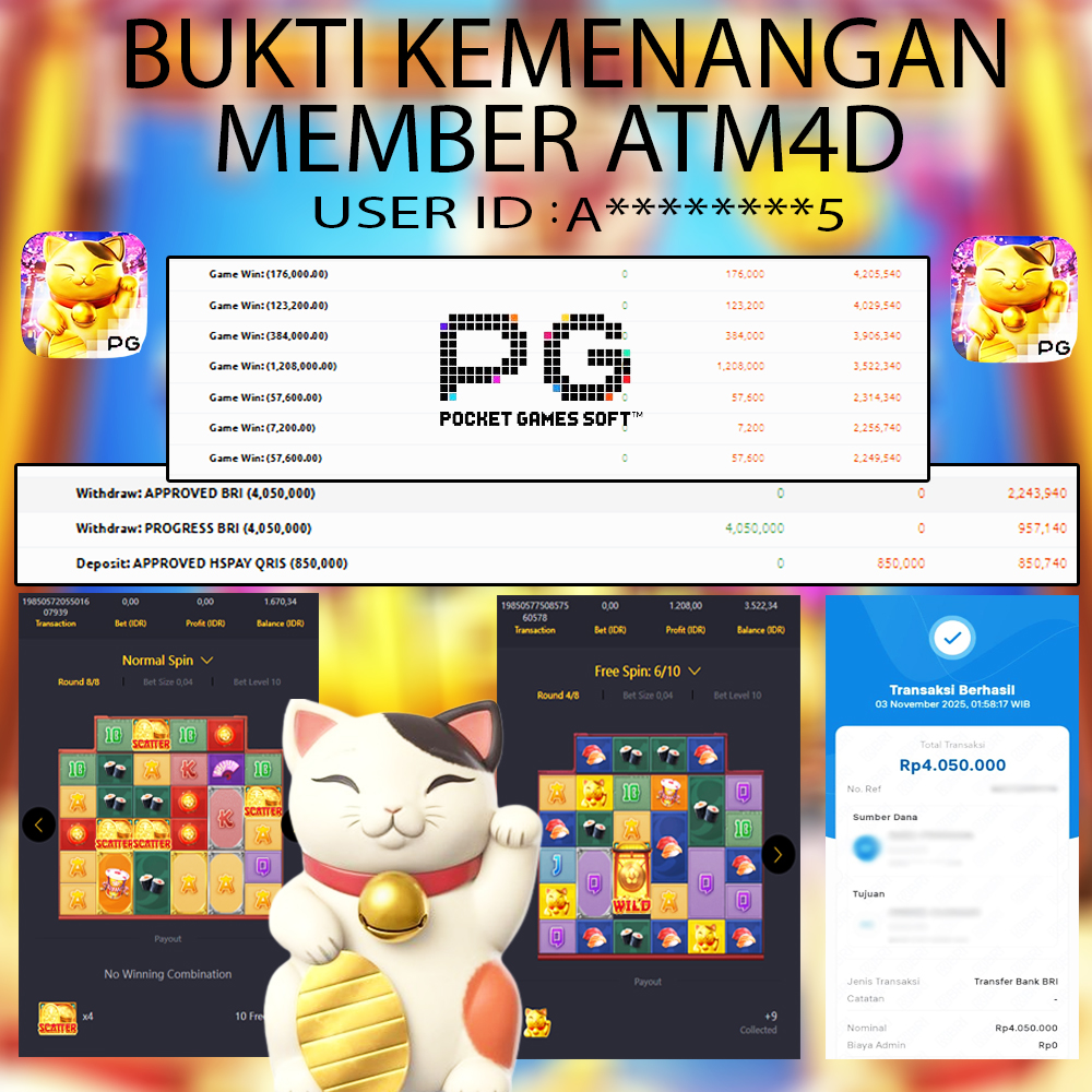 Jangan lewatkan kesempatan untuk meraih kemenangan besar. Daftar sekarang di ATM4D dan rasakan pengalaman bermain slot terbaik yang pernah ada! Putar gulungan, menangkan jackpot, dan jadilah bagian dari komunitas pemain sukses kami!