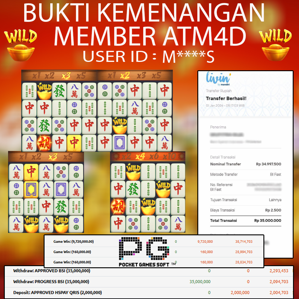 Selamat Kepada Member Yang Berhasil Mendapatkan Jackpot Dipermainan PG SOFT, Berikut Bukti Jackpot Member Di Situs ATM4D