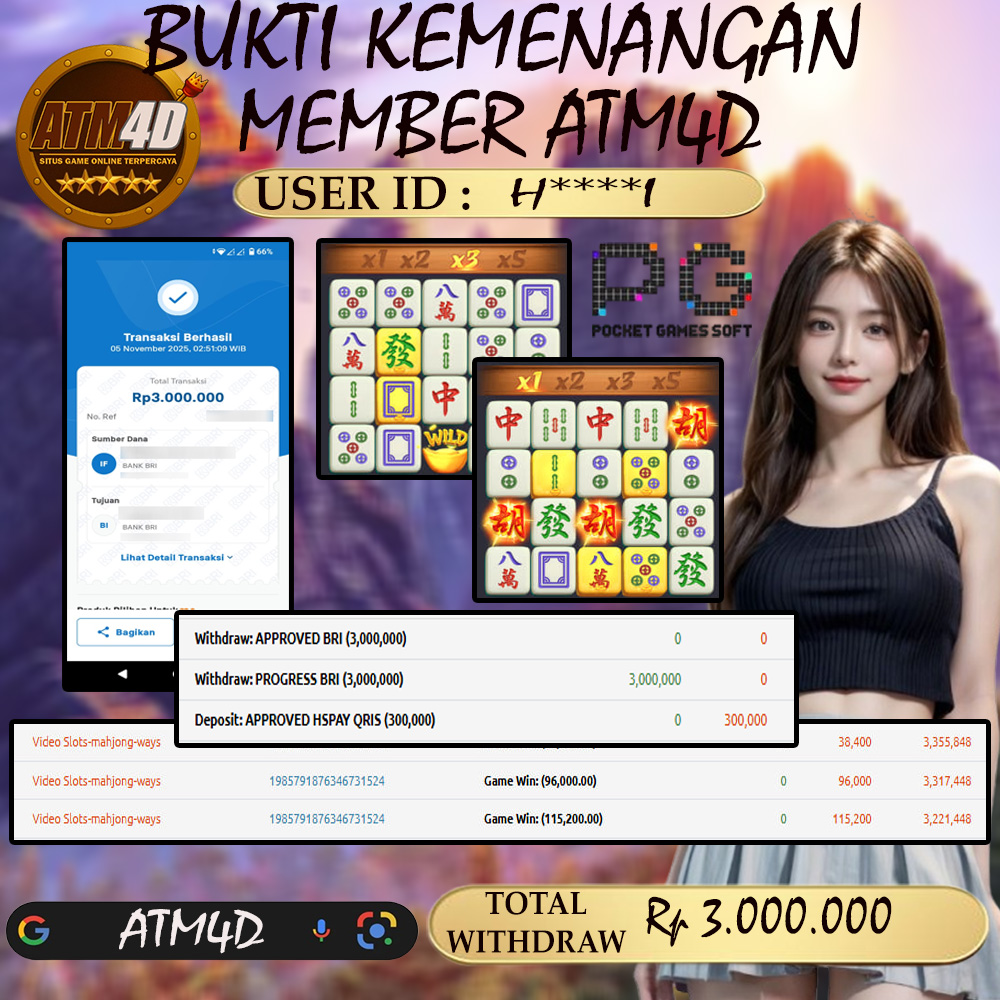 Jangan lewatkan kesempatan untuk meraih kemenangan besar. Daftar sekarang di ATM4D dan rasakan pengalaman bermain slot terbaik yang pernah ada! Putar gulungan, menangkan jackpot, dan jadilah bagian dari komunitas pemain sukses kami!
