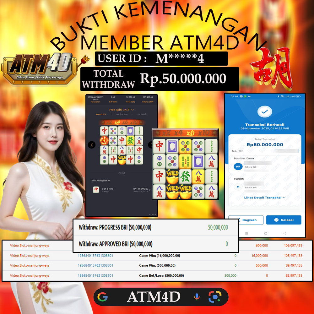 Jangan lewatkan kesempatan untuk meraih kemenangan besar. Daftar sekarang di ATM4D dan rasakan pengalaman bermain slot terbaik yang pernah ada! Putar gulungan, menangkan jackpot, dan jadilah bagian dari komunitas pemain sukses kami!