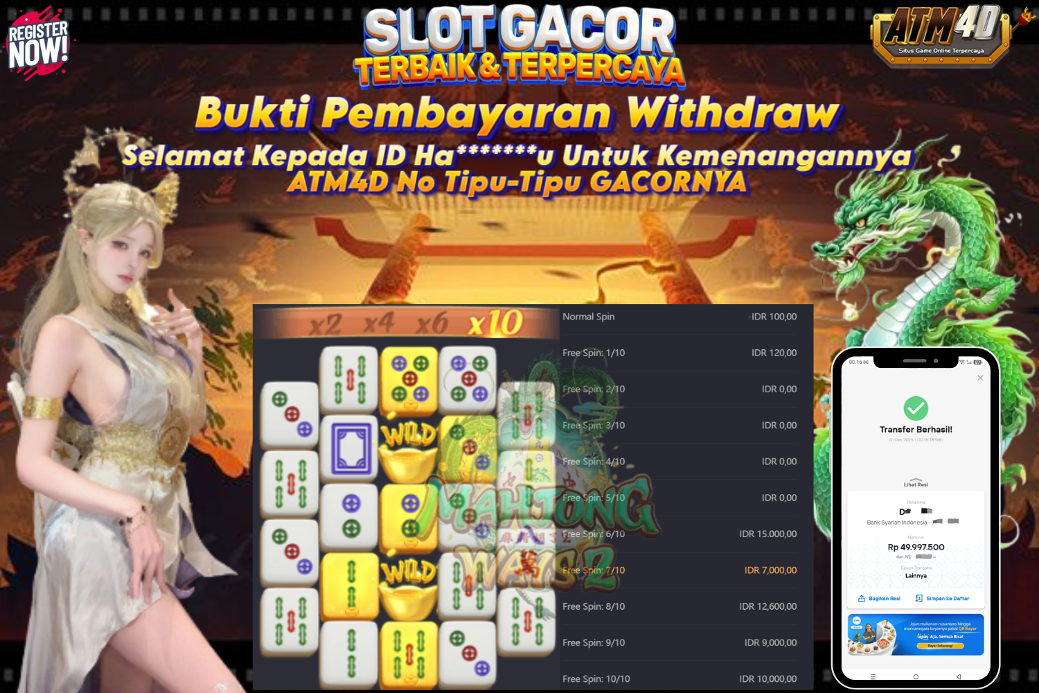 Jangan lewatkan kesempatan untuk meraih kemenangan besar. Daftar sekarang di ATM4D dan rasakan pengalaman bermain slot terbaik yang pernah ada! Putar gulungan, menangkan jackpot, dan jadilah bagian dari komunitas pemain sukses kami!