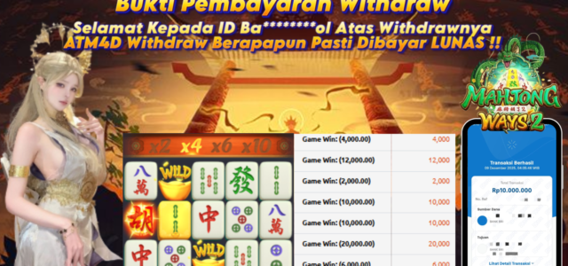 Jangan lewatkan kesempatan untuk meraih kemenangan besar. Daftar sekarang di ATM4D dan rasakan pengalaman bermain slot terbaik yang pernah ada! Putar gulungan, menangkan jackpot, dan jadilah bagian dari komunitas pemain sukses kami!