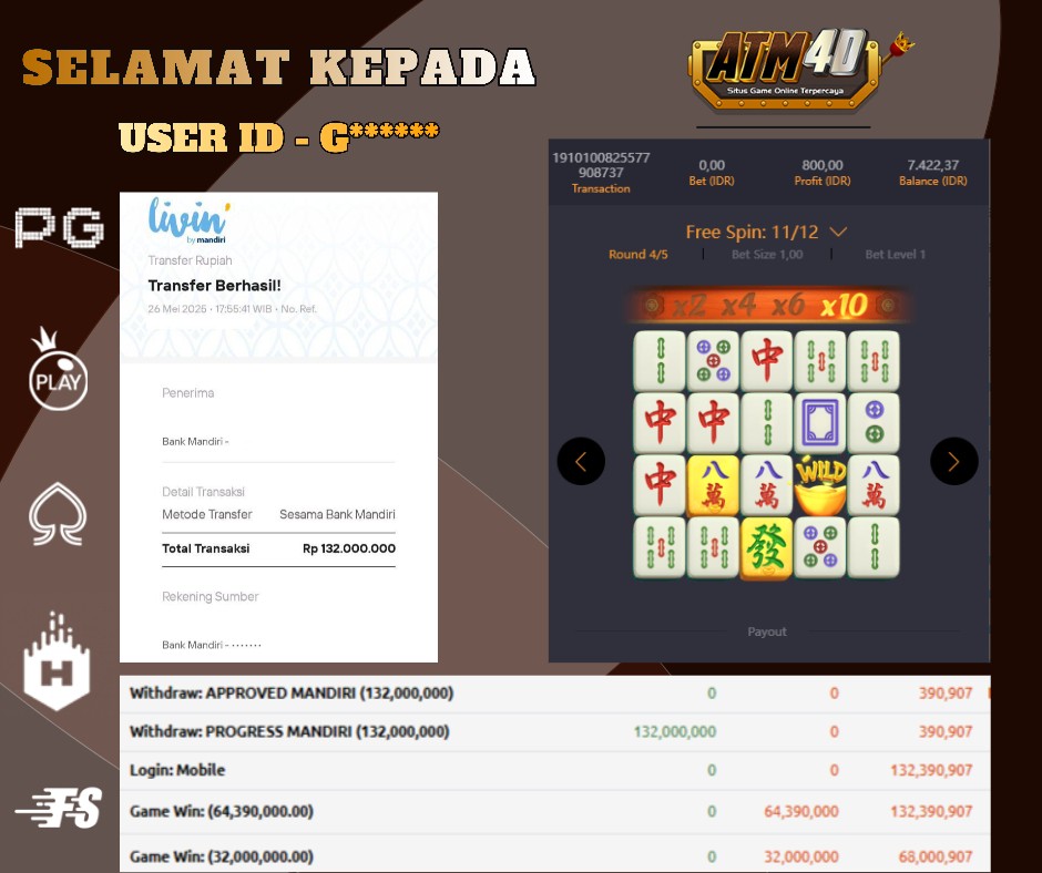 JACKPOT SLOT MAHJONG WAYS 26 MEI 2025, Bukti Kemenangan PG SOFT Menang Platform online, Situs Aman Tergacor dan Aman, Withdraw Berapapun Pasti Di Bayar Langsung, Maxwin Slot Online.