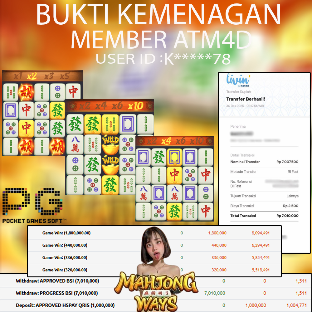Selamat Kepada Member Yang Berhasil Mendapatkan Jackpot Dipermainan PG SOFT, Berikut Bukti Jackpot Member Di Situs ATM4D