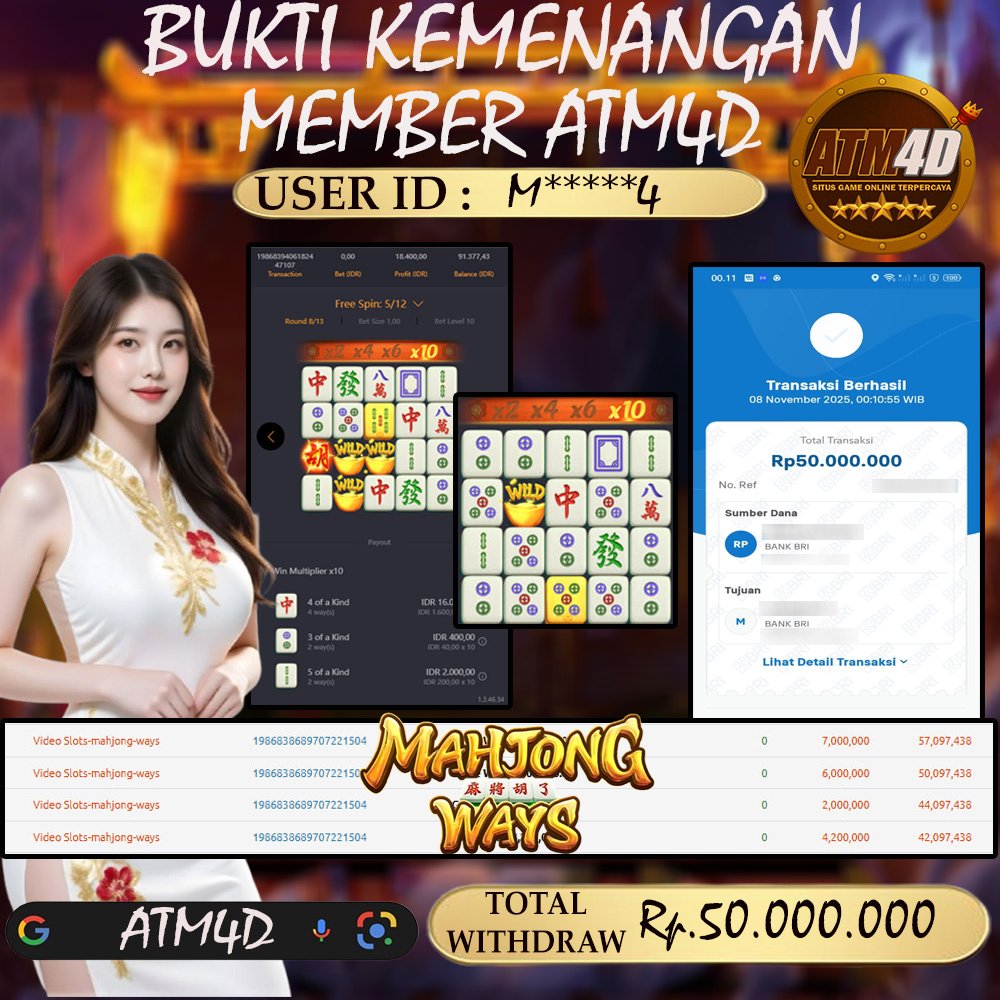 Selamat Kepada Member Yang Berhasil Mendapatkan Jackpot Dipermainan PG SOFT, Berikut Bukti Jackpot Member Di Situs ATM4D