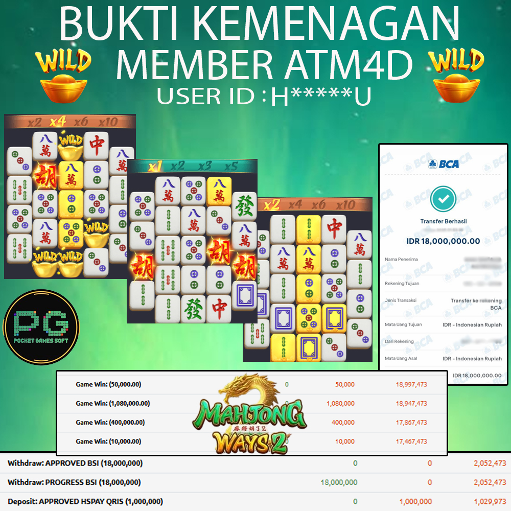 Selamat Kepada Member Yang Berhasil Mendapatkan Jackpot Dipermainan PG SOFT, Berikut Bukti Jackpot Member Di Situs ATM4D
