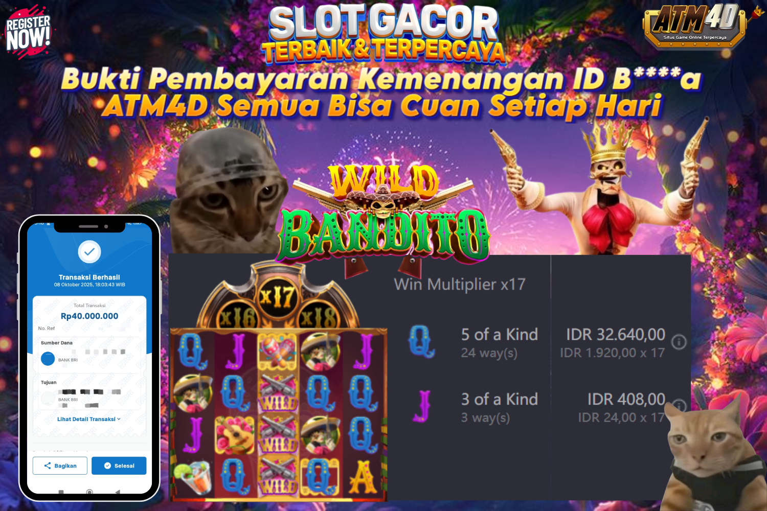 Jangan lewatkan kesempatan untuk meraih kemenangan besar. Daftar sekarang di ATM4D dan rasakan pengalaman bermain slot terbaik yang pernah ada! Putar gulungan, menangkan jackpot, dan jadilah bagian dari komunitas pemain sukses kami!